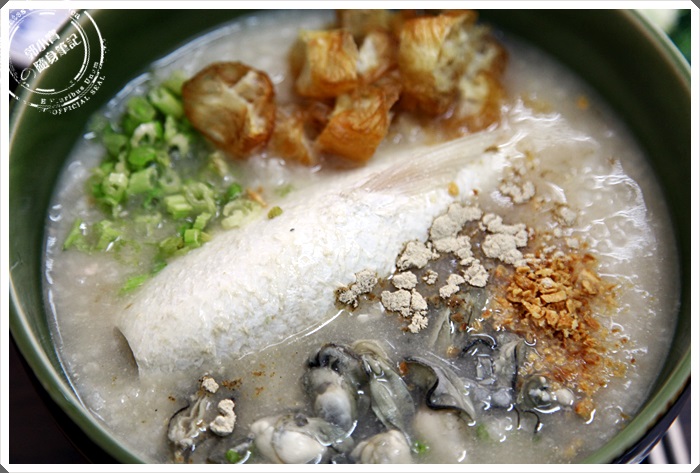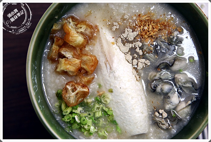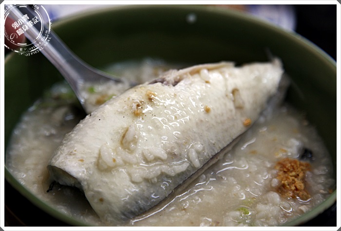 | 這一碗就是我最喜歡的虱目魚肚粥了,有著一整尾的虱目魚吃起來真的相當的鮮甜可口,搭配著滿滿的鮮蚵一口一口入口,簡直是超級美味,加上粥品的鹹度比例剛剛好,所以幾乎是一口接著一口吃的好不過癮。 |