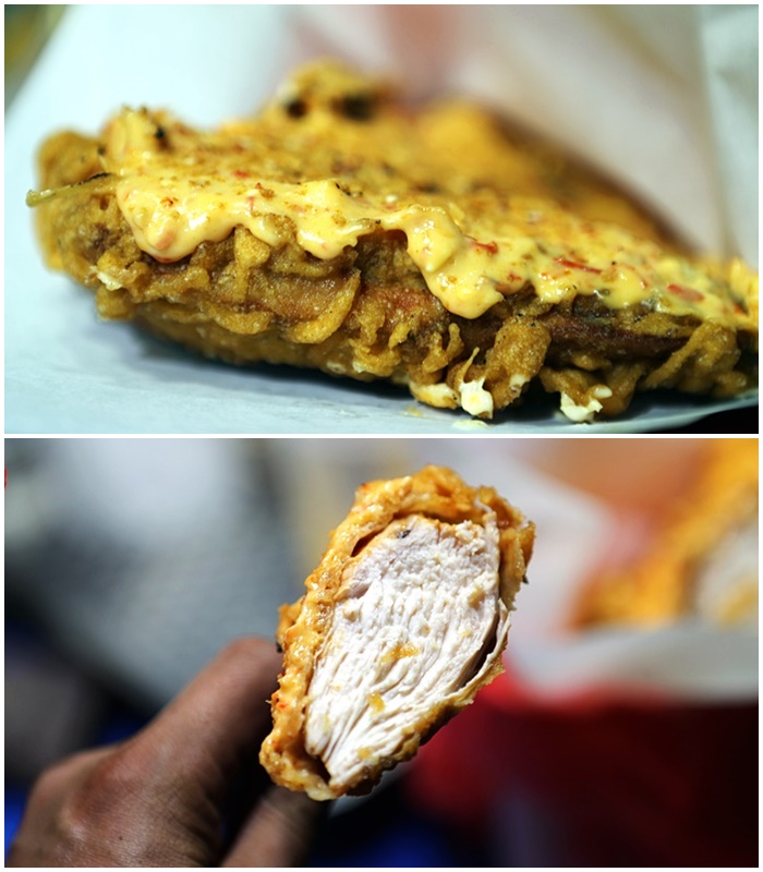 來分享一下隱藏版的口味,這是沒有出現在菜單的口味,都是熟客才會點的麻辣起司雞排,很多老客人來都會指定要這口味,我也是某次看到其他客人點我才跟著點,結果一吃就上癮了,她們家的麻辣口味本來就很過癮,再加上層次豐富的起司真的好好吃,麻辣跟起司真的是好朋友,加上厚切雞排的肉汁大噴發真的超過癮的,每一口真的都讓人爽度破表到不行!!!!!! |