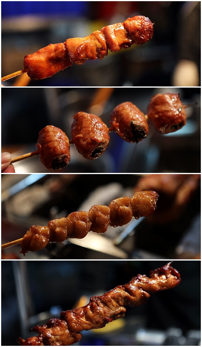 這一家也是我相當喜歡的一家,岩板雞肉串保留了完整的肉汁,加上蔥段堤味簡直是鮮美無比,品項相當的簡單,只有岩燒跟醬燒兩種口味,一串45大洋,我個人比較喜歡岩燒口味,包準你吃了一次就會愛上的攤販美食。 |
