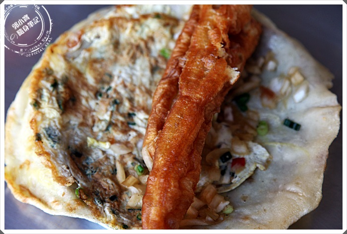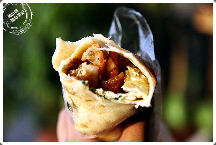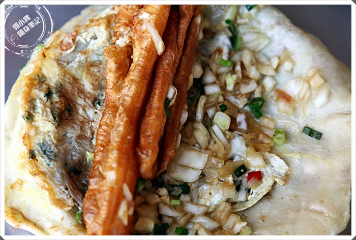 | 一口咬下就可以發現它的口感魔力真的有特別之處,蛋餅皮本身的口感具有嚼勁,油條是屬於鬆軟不脆的油條,所以整體撕咬起來口感相當的特別,加上在咀嚼中散發出來的餅皮香跟蔥蛋香,還有油條的美味全部混和在鹹中帶甜的洋蔥醬油裡面,真的是相當的特別也相當的美味,幾乎咬下第一口就會愛上它,尤其是那洋蔥醬油搭配餅皮的時候的比例真的解了許多油條本身的油感。 |