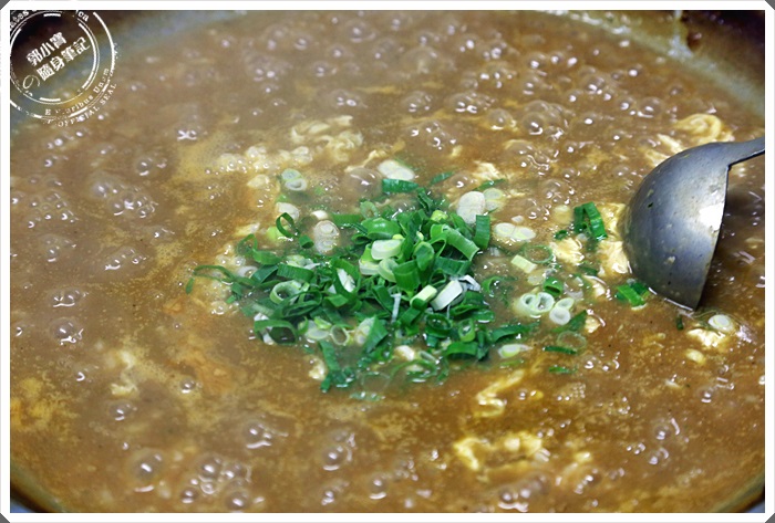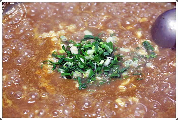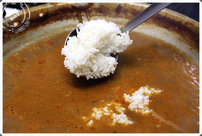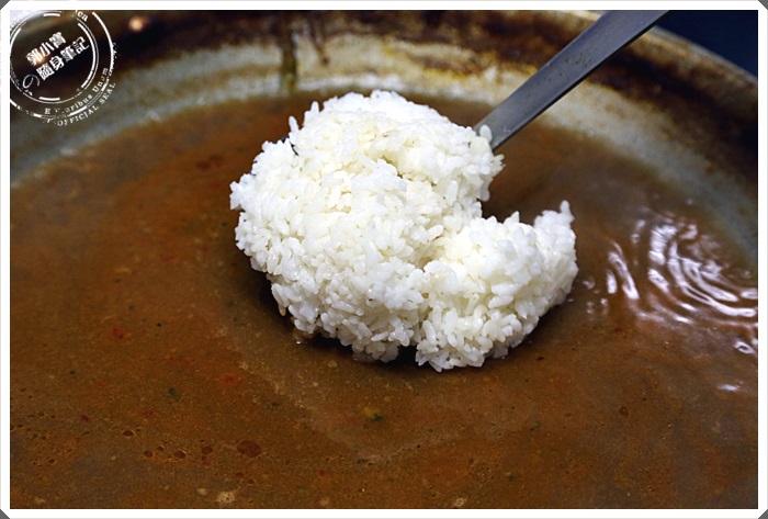 | 接著工作人員再倒入湯底,湯底主要是以辣椒、白胡椒炒成秘醬調味,再以魚骨、雞骨、蝦頭、蟹身熬煮高湯。 |