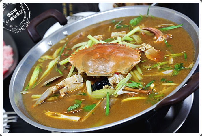 | 鍋子一上來當然就是這邊最有名的花甲蟹鍋了,這一鍋算是基本鍋,最主要鍋裡面會放進名為花甲的海瓜子,再搭配客人選用不同的蟹類,花甲本身就相當適合熬湯煮鍋,搭配的每一種不同的螃蟹都可以吃出不同的口味,這也是那麼多老饕那麼喜歡持續造訪的原因了。 |