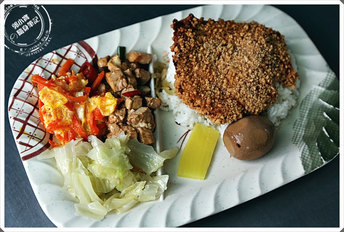 我個人是比較喜歡他們家的雞腿,應該說我本來對於雞腿飯跟排骨飯來比較的話,我是屬於比較喜歡雞腿便當的人,阿英便當的雞腿我也覺得超優,幾乎是不沾粉下去炸後,外皮也是酥脆,但是裡面的腿肉卻相當嫩口且多汁!! |