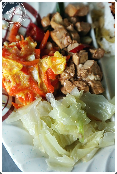 | 配菜的部分可以自己挑選三種,吃起來的口味其實大部分都差不多,不過因為阿英排骨飯的生意很好,所以廚房幾乎都是一直在補菜色,唯一覺得跟其他便當店不同的就是菜都熱騰騰的。 |
