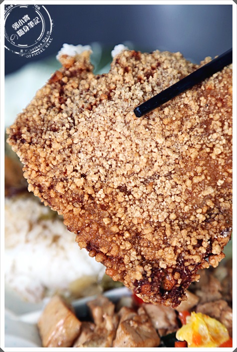 炸排骨就是阿英便當的重點了,一口咬下去的酥脆真的相當的迷人,是屬於小時候吃的那種古早味,肉應該有先醃製過,帶點甜味與炸粉緊密的結合在一起相當的搭口,肉汁還算是非常多。
