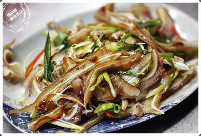 這邊的豬耳朵特別的脆口,搭配上絲條狀的青蔥根甜椒,整體的口感相當的爽口,很少可以吃到那麼清爽又脆口的豬耳朵。 |