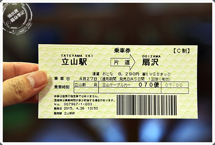 車票上面有註明你搭乘立山登山電車的時間,我們當初預定的時候就填寫了第一班7點的車次,