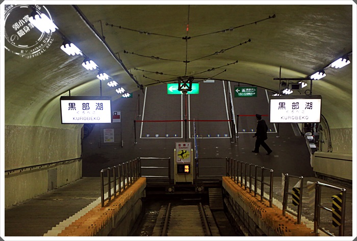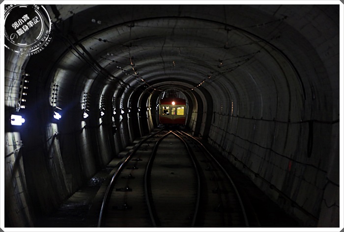 | 黑部平的登山電車是在斜坡的陰暗山洞里行駛,中間還會有另一部電車交錯,彷彿有種地心探險的感覺。 |