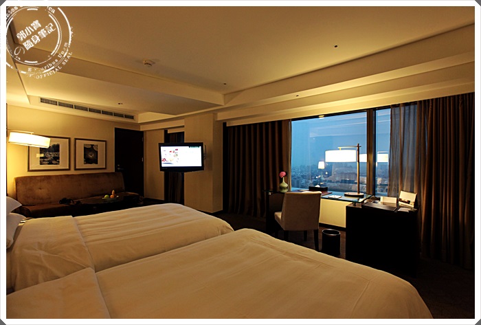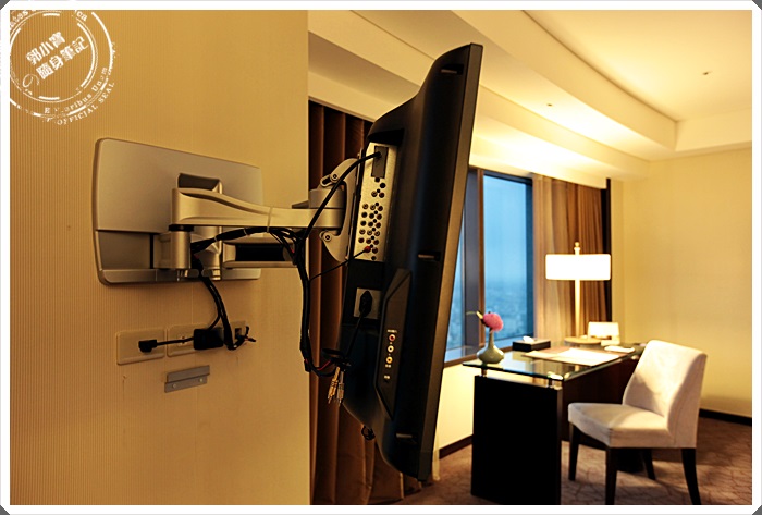 | 電視在床鋪的左前方,本來還以為晚上看電視會很不方便,但是其實一點都是我想太多了,因為飯店早就偷偷做了超方便的設計。 |