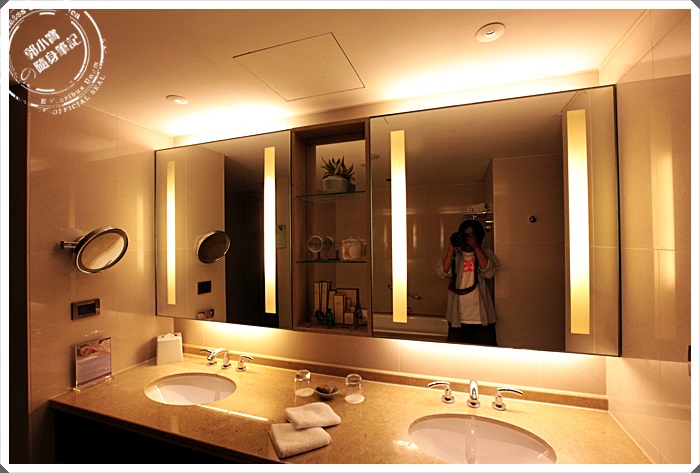 | 接下來就是廁所了,一進門就看到一個超大的梳妝台,我超喜歡這種大鏡子的廁所,洗手台上也擦拭的很乾淨,之前還有入住過飯店房間食水痕沒有擦拭乾淨的,我還滿重視這一點的。 |