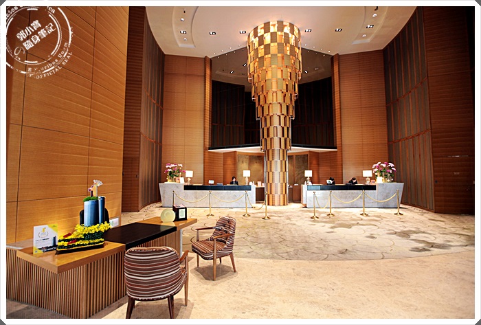 台灣的飯店裡面少見那麼氣派的大廳櫃檯,一整個就是金光閃閃,不過我們辦理入住手續的時候,才發現我們這次入住的樓層不屬於在一樓大廳櫃檯辦理,因為我們這次住的算是行政類的房間,所以是必須到另一個地方辦理入住手續的。
