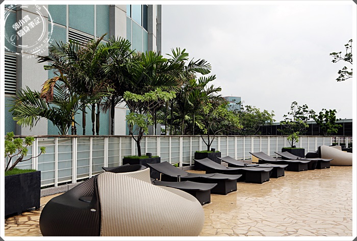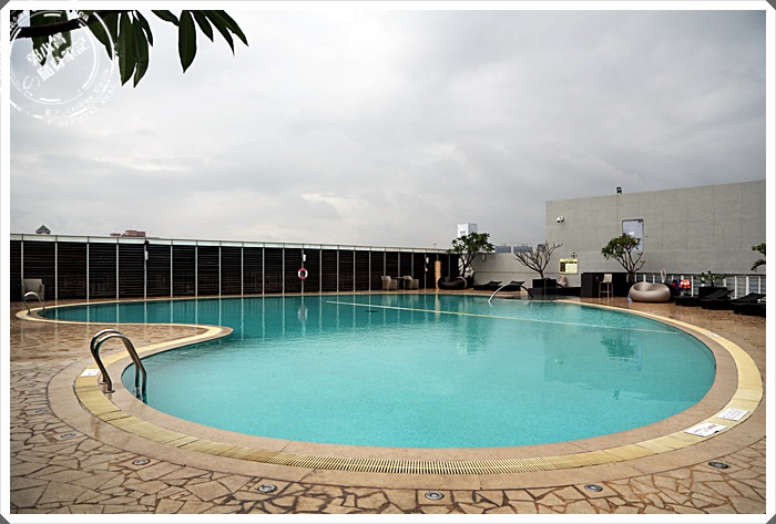 | 先來看一下可以看到一整片天空的游泳池,因為周圍都沒有比香格里拉遠東國際飯店更高的建築,所以幾乎四周圍都沒有遮蔽物,可以獨自享受一整片的藍天。 |