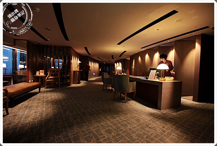 | 辦理豪華閣房行的樓層在二十四樓,一出電梯就可以看到豪華閣的指標跟櫃檯了,這邊有別於一樓大廳的磅礡氣勢,走的是低調奢華的風格,服務人員親切的為我們辦理入住手續後,還相當的細心為我們解說豪華閣房型的細節,並且告知隨時都可以使用豪華閣的休息室,我們入住的時間剛好就是豪華閣下午茶的用餐時段,所以我們請服務人員將我們的行李直接送進房間,一群人就直奔豪華閣的貴賓休息室了。 |