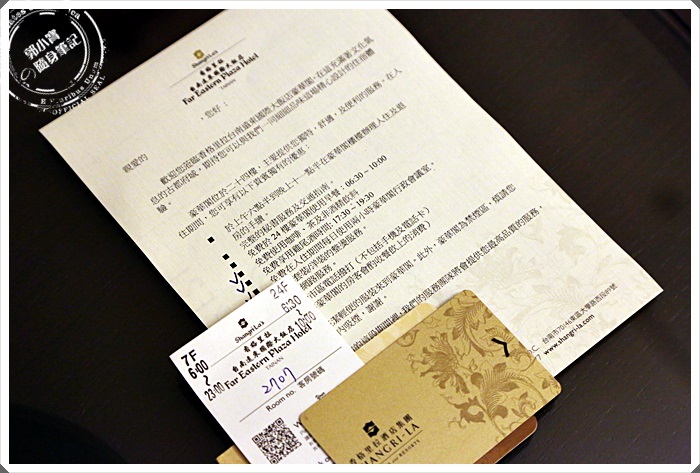 | 除了拿到房卡以外,還獲得詳細香格里拉遠東飯店功略一本,裡面詳細記載了各個公共空間的時間及房間內的設施,還有可以使用的服務項目。 |