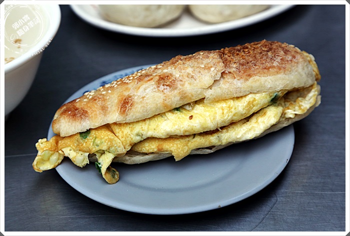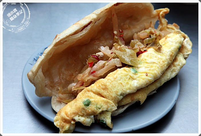 | 寬來順還有一個是我滿喜歡的,就是燒餅夾蔥蛋,寬來順的燒餅是比較不油的那種,所以口感會略乾一點,最主要她除了有蔥蛋以外,裡面還有秘密武器就是辣炸菜,跟蔥蛋組合起來一整個超美味的,燒餅一點都不會油,麵甜香氣也相當的夠,蔥蛋跟辣炸菜味道也相當的搭口,整體吃起來相當的過癮。 |