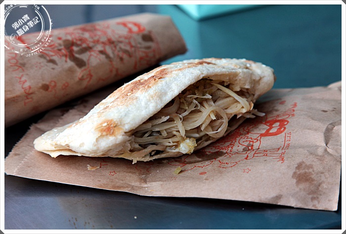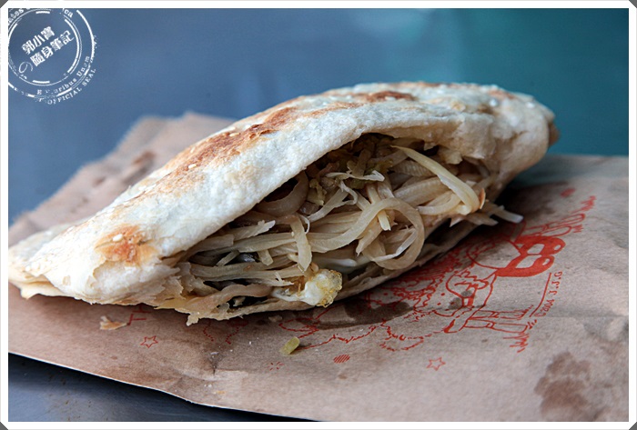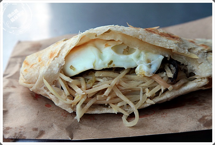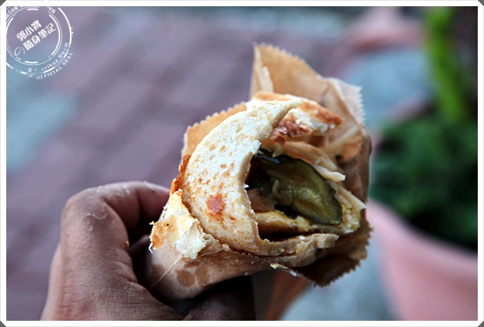 | 另一款就會點簡單的燒餅夾蛋菜,少了黑輪的嚼勁就相當的輕鬆許多,單純享受那燒餅跟蛋菜的滋味,不管哪一款我都超喜歡的。 |
