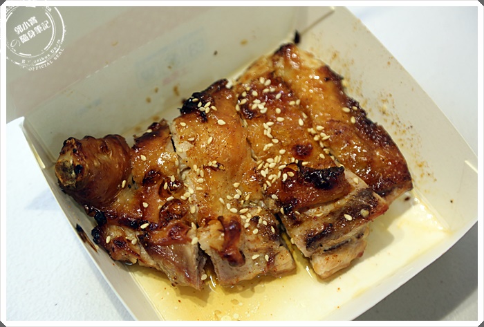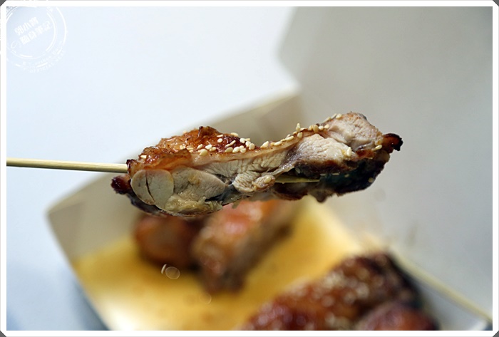 | 雞腿排吃起來相當的嫩口,肉汁也相當的飽滿,皮的部分帶點Q度,撒上芝麻吃起來很搭口,吃起來口味不會過重,跟一般夜市的烤雞腿排刷了一堆醬的死鹹完全不同,老闆說它們的雞腿排是先稍微的醃製過,主要提升雞腿排的原味。 |