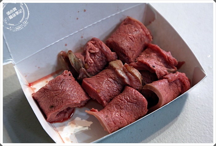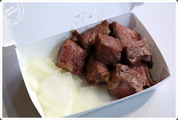拿到手上的時候我確實滿震驚的,這樣品質的牛肉確實是我在夜市裡面第一次看到,單價一份110元,分量卻是挺足的,趕緊吃上一塊,那鮮甜的肉汁滑過嘴裡真的是太鮮甜了,咀嚼中也可以享受到牛肉的滑嫩,這樣的品質真的在比較高級的牛排店才可以享受到,真的是很厲害耶,難怪可以讓一堆人衝著這隱藏版的牛肉美食來排隊。 |