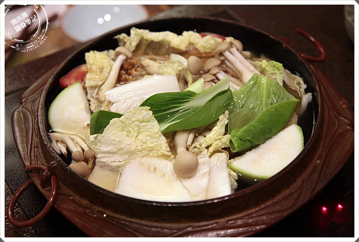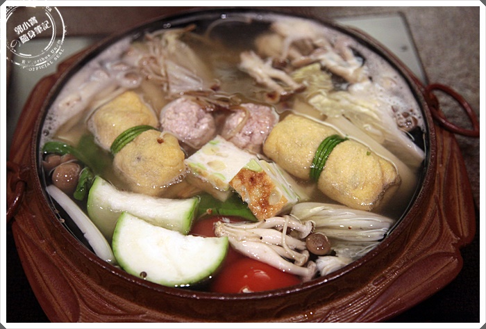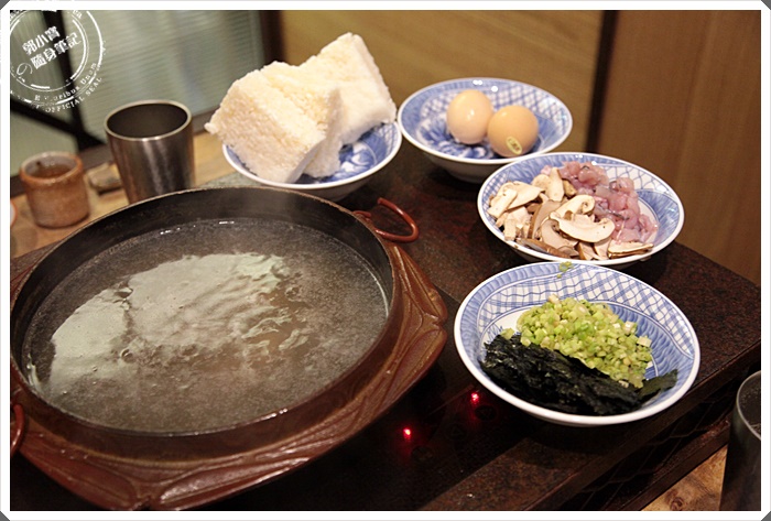 | 老闆自己燒製的陶碗深淺不一,裡面放了北寄貝、依比利松板豬、桂丁雞胸三種食材,熬煮了蒜味高湯後,直接往碗裡面沖,感覺就像是台南吃牛肉一樣,也是利用涮湯的作法,盡量讓消費者可以吃到食材最新鮮的原味,最後湯汁喝完感覺大滿足。 |