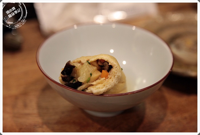 | 蓮子毛豆燒吃起來爽口鮮甜,雞肉丸子讓我簡直一吃就愛上,真的很好吃,還有服務人員介紹的東寺五目卷,外面的那一層豆皮據說是日本空運來台的豆皮,咬起來比較厚且有蛋香,裡面的餡料超飽口,但是整體清爽不膩,好吃!!! |