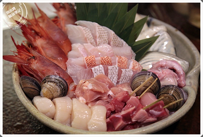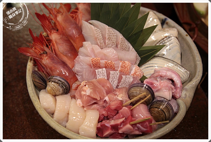 | 這一大盤海鮮看起來就相當的豐富,但是沒介紹我們真的還不知道它的價值在哪裡,後來經過大廚的解說我們才驚覺,這些海鮮幾乎每個來頭都不小,海鮮的部分私宅涮涮鍋都要求一定要野生海鮮,在最新鮮的時候做成生魚片送到客人桌上,還有野生的河豚料理,在日本光是吃河豚就可以燒掉1000台幣了,更何況這邊的海鮮真的超豐富的。 |