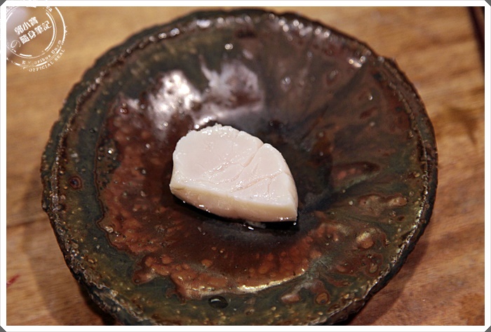 | 可以生食的大干貝當然品質沒話說,過一下熱水就入口,吃到這邊的時候簡直都快上天堂了。 |