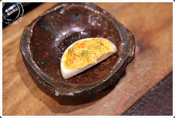 | 超讓我有驚豔感的玉米豆腐,入口的感覺比較濕稠一點,帶點咬勁還散發著玉米芬芳,很棒的一道前菜呢!!! |
