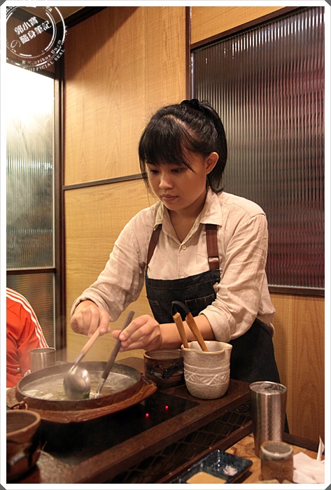 | 可愛的工作人員幫我們把鍋裡面的其他食材撈起,因為涮牛肉避免跟其他食材混到,這邊工作人員都相當的親切也很有耐心,面對我們這群鬧哄哄的人也始終保持真心的笑容。 |