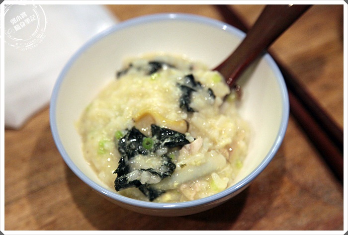 | 這一碗有著淡淡的海苔香氣加上鹹度適中,嘴把咬的有海魚跟鮑魚的彈牙口感,米飯燉煮軟爛相當好入口,水分收得有點乾到有點稠感,入口那味道的層次豐富飽滿。 |