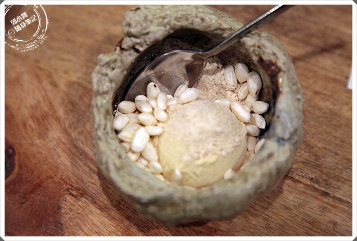 這甜點大受我的喜愛,那爆米香的"潤潤"的口感搭配著有點古早味的冰淇淋香氣,鹹甜鹹甜得非常順口,一碗根本就感覺不夠,一整個意猶未盡。 |