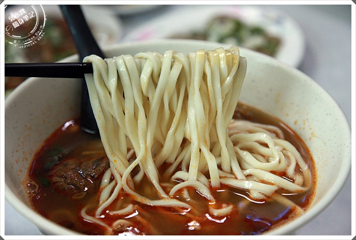 | 永昌牛肉麵的麵條是屬於粗麵,煮的熟度是我還滿喜歡的,帶點彈牙的口感,麵心的部分稍微帶點硬度,咀嚼起來可以品嘗到麵甜香氣。 |