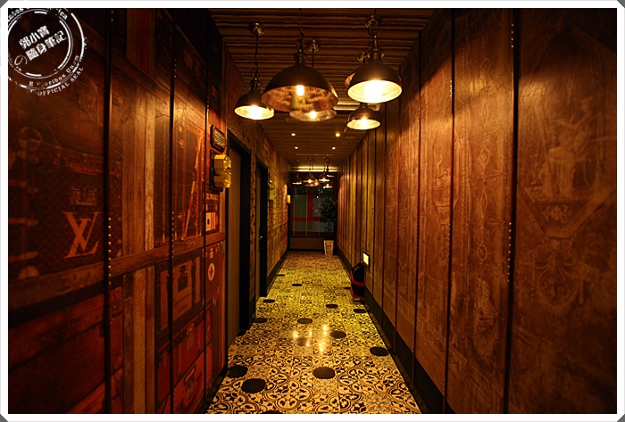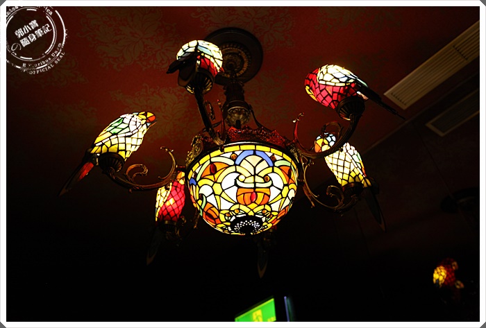 | 走道上的吊燈也很復古,有點像是歐式琉璃造型吊燈,透過燈光反射光源相當的美麗。 |