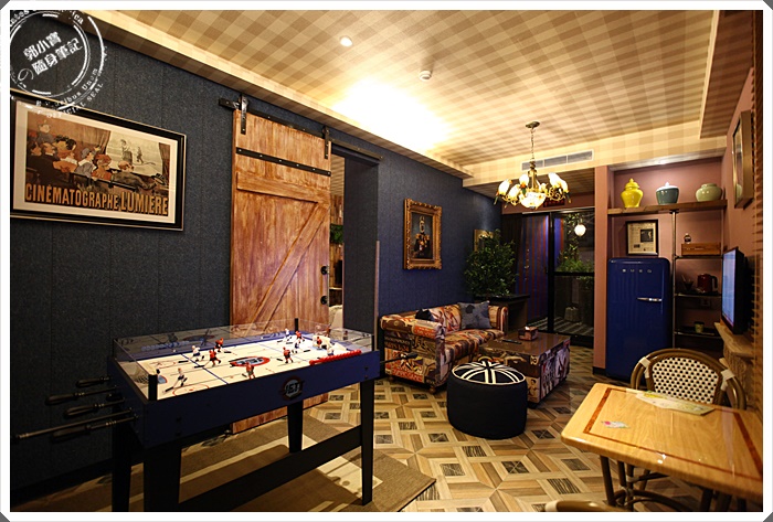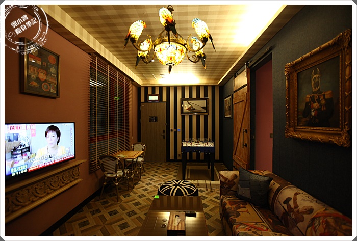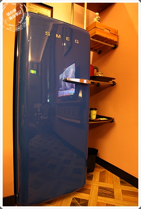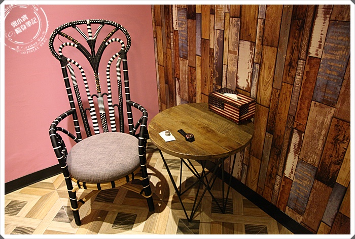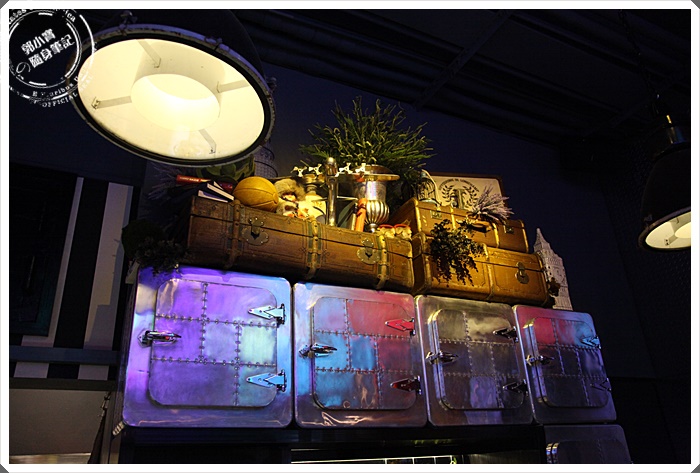 | 一樓的設計元素相當的多,又帶點工藝風、又帶點科幻風、櫃檯後方的仿製鑄鐵櫃第一眼我就好喜歡,上面還有仿舊皮箱,堆疊的不對稱層次感,讚! |