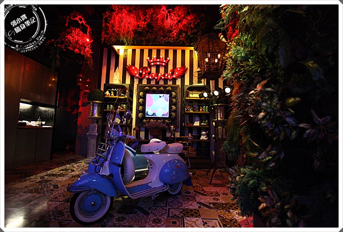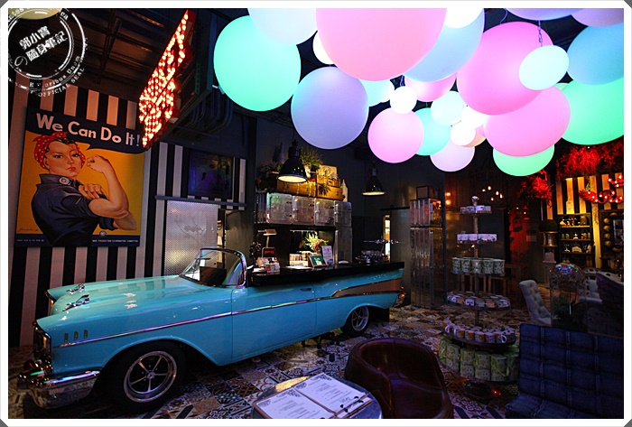骨董車當成櫃台,煞那間還以為有人坐在副駕駛座感覺要行駛的感覺,五顏六色的燈光求照耀的相當耀眼,一整個就是超華麗的,建材都用的很棒,讓人分不清楚是不是走入了另一個童話世界,超迷幻的啊!!! |