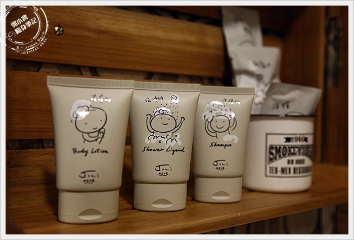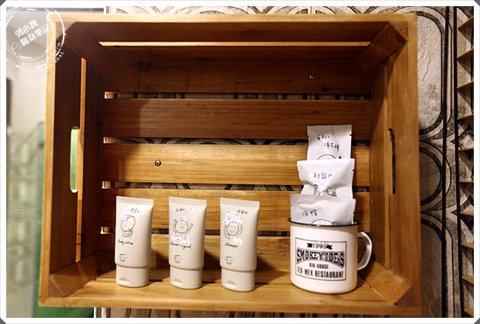 | 盥洗用品放在特製的小木箱相當可愛,沐浴用品也都超可愛的,洗髮精洗起來還滿舒服的,很多地方的備品洗起來都感覺很糟,它們家的香味也不會覺得刺鼻。 |