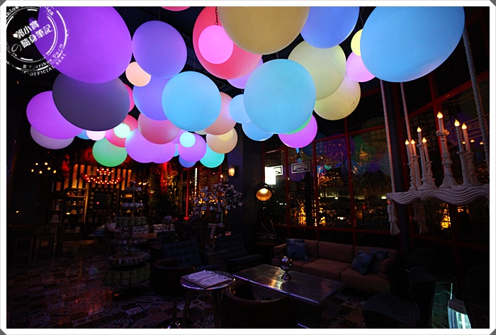| 大廳空間本身就超像酒吧的,晚上搖身一變就成了冒煙小酒館,大廳本身就是一間餐廳,地下室還有很多座位,早上10點半前不接客人,是房客專屬的早餐空間,房客晚上在這邊喝點小酒與三五好友一起聊天也超愜意的,我最喜歡的還是他們家天花板上五顏六色的球型燈,還會一直變換顏色。 |