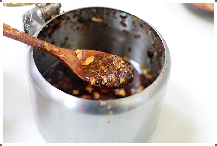 | 每家厲害的牛肉麵都少不了厲害的辣油,川味的辣油完全是自製的非常健康,吃起來不會太嗆辣但卻有一股四川味的微微花椒麻味,還是要請斟酌使用唷!如果吃了川味的辣油非常合胃口的也可以單買回去享用。 |