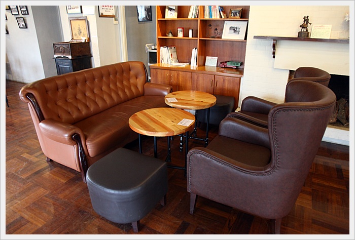 | 正中央的小牛皮沙發跟書櫃更添書香氣息,讓我想舒服的坐臥在沙發上看書,喝上一杯咖啡,度過一個小確幸的下午時光。 |