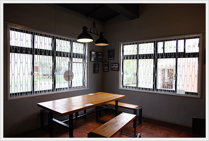 我超喜歡1號店的室內用餐空間,有個小區域都有不同的感覺,這小角落彷彿回到我小時候朋友的眷村聚落大會堂,那六角造型的鐵窗加上木板,簡單的桌椅跟牆上幾幅老照片,瞬間讓人走回來50年代,那村落的人聚在一起七嘴八舌的吵鬧日子裡。