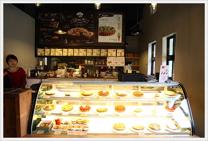 | 前方就是1號店的商品販售處,美國派櫃前面還有紅龍柱,尖峰時間真的人潮相當的多,可見得它們的派類也很受歡迎,但是可惜我今天只有一個人來,沒有辦法裝那麼多甜點,今天的重點還是再他們新口味的生乳捲,下次再來征服這些美國派。 |
