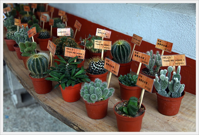 | 門口有很多小仙人掌都超可愛的,這每一盆小仙人掌都有販售。 |