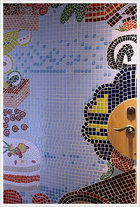 | 2號店的木門是用馬賽克磚拼貼出來的可愛圖案,看了心情就覺得很好,讓心情都繽紛的起來。 |