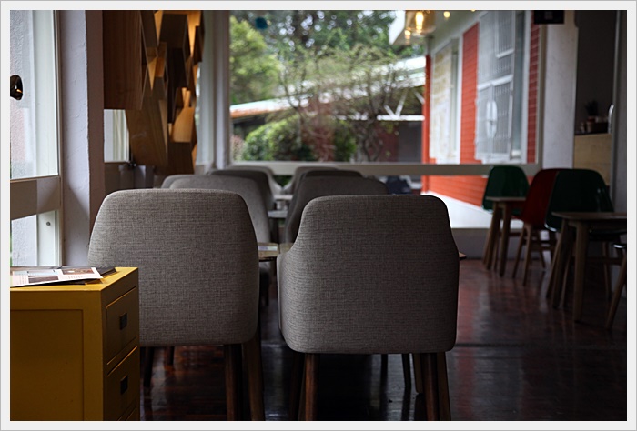 | 進入2號店的感覺跟1號店完全不一樣,2號店外亭使用大量的全景玻璃窗,讓人可以清楚看到外面的綠色植物以外,使用的是布料坐墊,反倒給人一種優雅的悠閒感,視野度也增加許多。 |