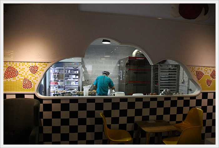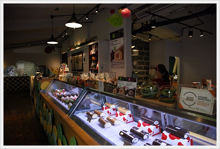 | 2號店裡面還有一個烘培廚房,透過透明廚房的玻璃,可以完整的看到生乳捲的製作過程,透過玻璃窗可以看得很清楚,裡面相當的乾淨,且每製作一次裡面的人就會把用具清洗一次,不會因為反覆在製作烘培,所以器具都沒洗。 |