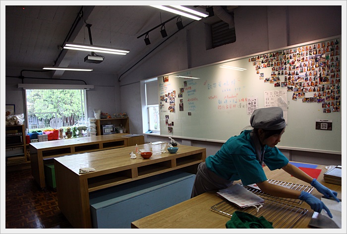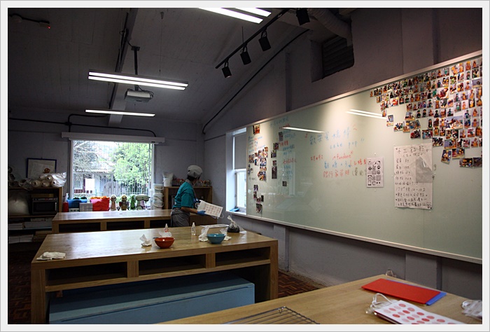 | 裡面最大的一個大房間就是親子DIY的教室,當天剛好有人DIY結束所以我順便可以偷拍一下,一進去就聞到陣陣的香氣,一問一下才知道剛剛小朋友們在烤餅乾,好像很有趣的感覺。 |