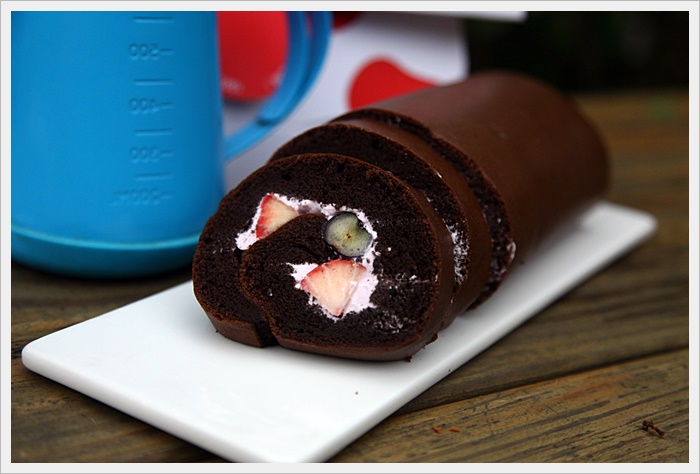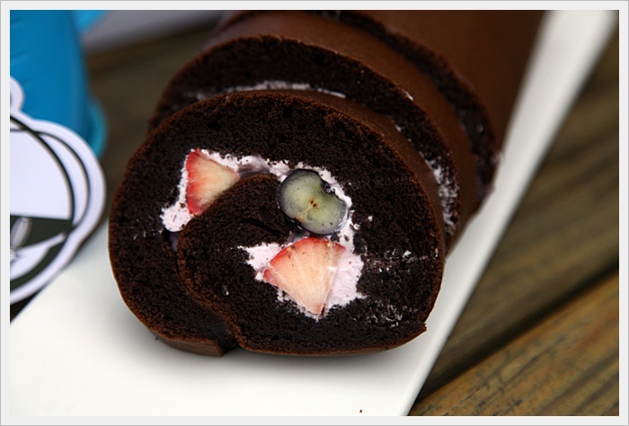 喜歡重口味可以選擇這一款,因為莓果的關係,確實也讓這一條生乳捲有了不一樣的變化,特濃黑巧克力遇上莓果的衝突確實相當特別。 |
