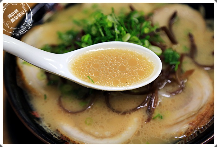 | 湯頭喝起來也跟一蘭很像,簡直快一模一樣了,特別的是赤拉麵的豚骨湯頭喝到最後也不會覺得過鹹,但是麵條的鹹度比例較高,這一點讓我驚訝滿久的,反正就是很博多的豚骨,濃郁卻不過油。 |