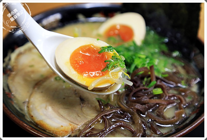 | 這一碗是人氣度最高的,老實說它們家的單價這樣算是很便宜,兩塊叉燒跟一整顆的糖心蛋,用木耳絲代替筍乾,木耳絲跟筍絲的口感完全不一樣,真的相當的特別。 |