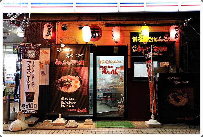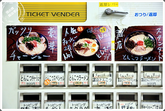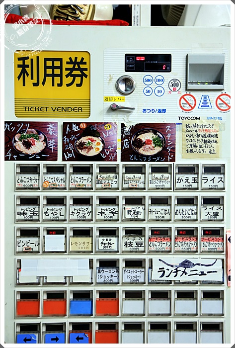 | 走進一看才知道原來是一家豚骨湯頭的拉麵店,裡面看起來人還滿多的,但是上網查了一下日本美食網站,發現他的分數並不是很高,但是又不想多走路,所以就想說進去試試看好了,搞不好合我的口味,這一家店營業到凌晨兩點,營業的滿睌的,很適合我們這種一定要吃消夜的人。 |