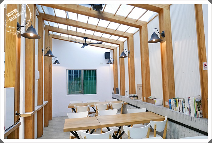 | 店內的座位數意外地頗多,很有型的空間設計旁邊還有些許書籍 |
